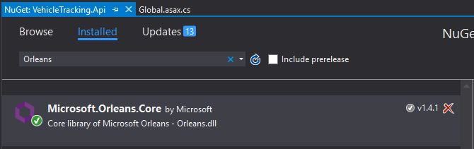 We are ready to coding REST endpoint. Let’s create an empty Web API project called “VehicleTracking.Api”. Then add “Microsoft.Orleans.Core” package via NuGet Package Manager as follows: